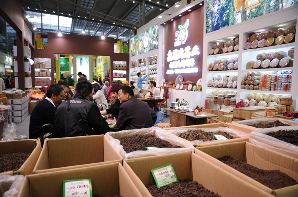本次茶博会我省组织了100余家云南茶企参加,其中大益、下关、勐库戎氏、雨林古茶坊、六大茶山、陈升号、斗记普洱、岁月知味、云茶印象、高顶茶业、干仓之味、祥源茶业、土林、昌泰、中吉号、冰岛昔归等普洱品牌均在本次茶博会亮相,云南普洱茶成为本届茶博会最大的亮点,据不完全统计,在此次深圳茶博会期间总计约9万款普洱茶参展,名山古寨、陈年老茶一应俱全,令人大饱口福。