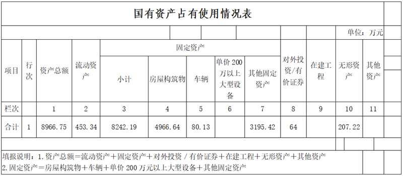 截至2020年12月31日,云南省德宏热带农业科学研究所部门资产总额8966.75万元,其中,流动资产453.34万元,固定资产(原值)8242.19万元,对外投资及有价证券64.00万元,在建工程0万元,无形资产207.22万元,其他资产0万元(具体内容详见附表)。与上年相比,本年资产总额增加30.43万元,其中;固定资产(原值)增加867.24万元。处置房屋建筑物0平方米,账面原值0万元;处置车辆0辆,账面原值0万元;报废报损资产44项,账面原值24.79万元,实现资产处置收入0万元;出租房屋29854.38平方米,账面原值2139.49万元,实现资产使用收入569.57万元。