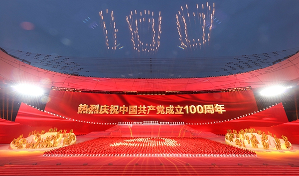 6月28日晚,庆祝中国共产党成立100周年文艺演出《伟大征程》在北京国家体育场盛大举行。新华社记者 庞兴雷 摄
