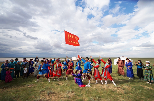 蔚蓝的天空下,紫红色的蒙古舞袍随风漫卷,马头琴琴声悠扬飘荡,内蒙古的广袤草原上,一支支乌兰牧骑为群众唱响动人牧歌。60多年来,乌兰牧骑队员们始终扎根生活沃土、服务牧民群众。
