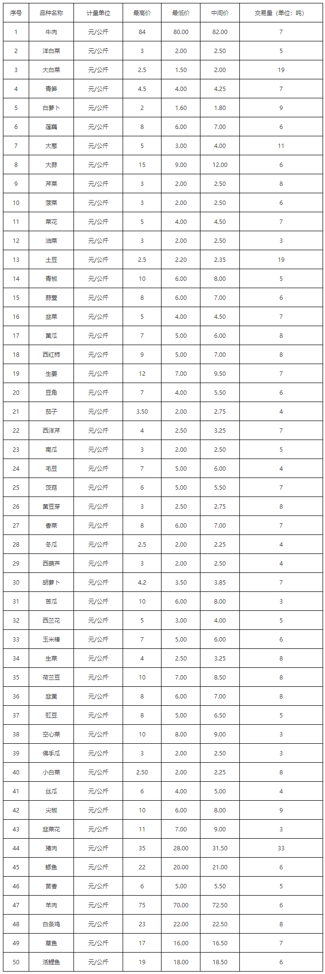 云南龙城农产品经营股份有限公司2021年12月31日参考价格