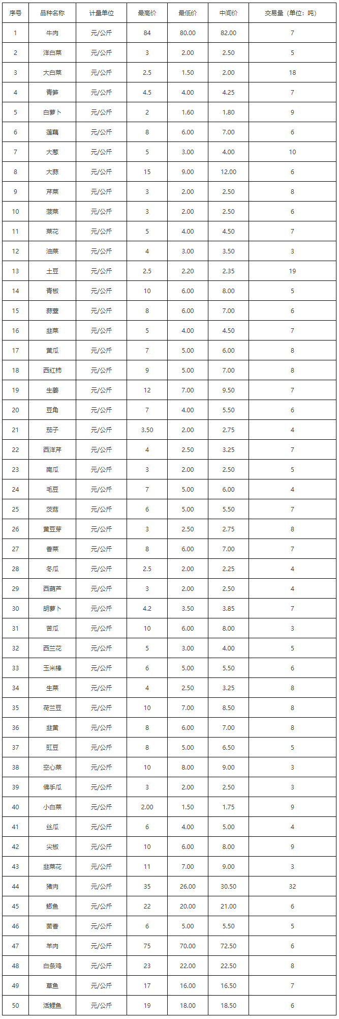 云南龙城农产品经营股份有限公司2022年1月5日参考价格