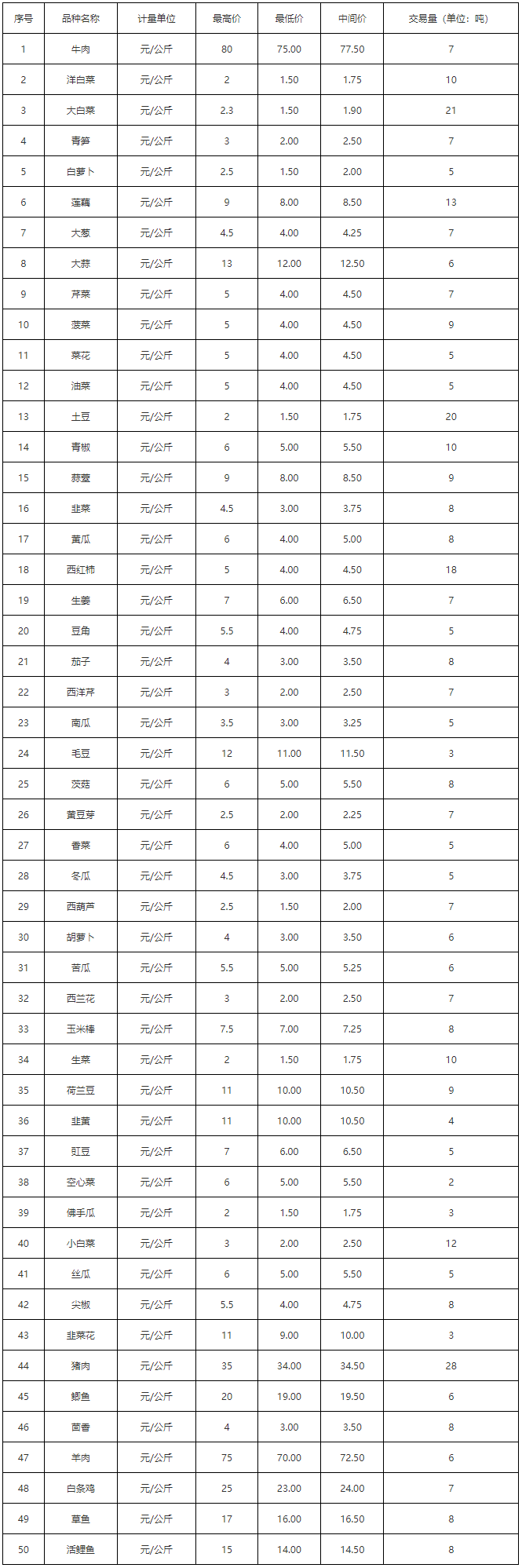 云南龙城农产品经营股份有限公司2022年11月29日价格信息