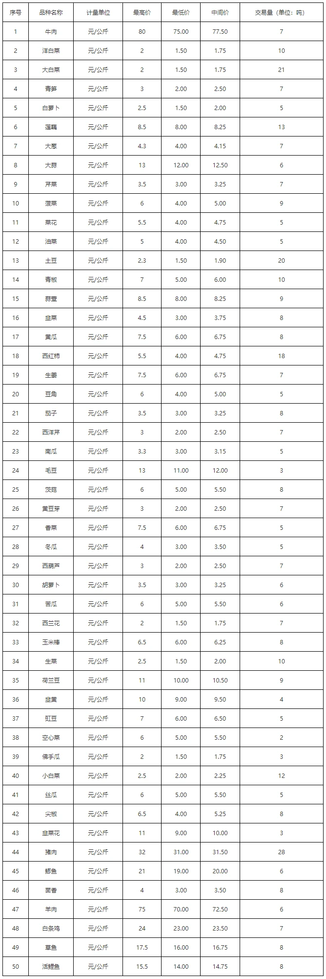 云南龙城农产品经营股份有限公司2022年12月2日价格信息