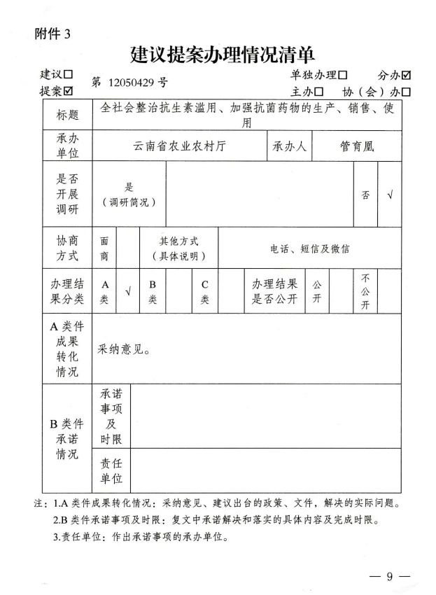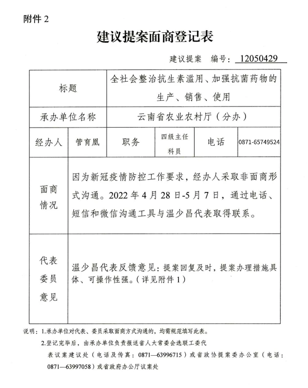 你们提出的关于全社会整治抗生素滥用、加强抗菌药物的生产、销售、使用管理的提案(第12050429号),已交我们研究办理“农业、畜牧兽医部门采取确实可行措施,加强对养殖过程中抗菌药物使用监管”这一部分,现答复如下: