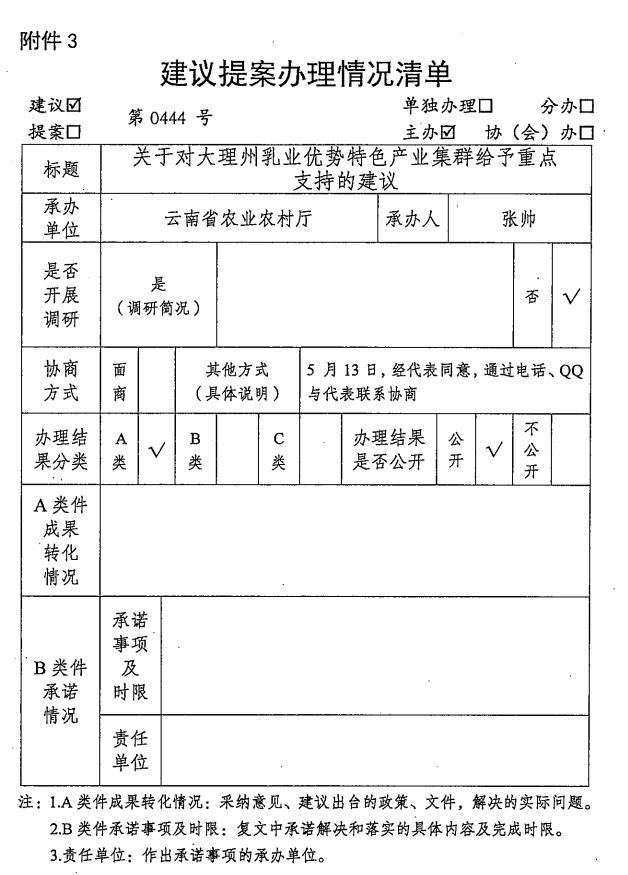 你们提出的关于对大理州乳业优势特色产业集群给予重点支持的建议(第0444号)已交由我们研究办理,现答复如下: