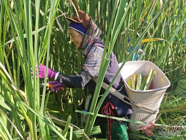 秋日,大理白族自治州鹤庆县辛屯镇辛屯村连片的茭白迎来丰收,工人们正来回穿梭在“绿浪”中,忙着采收茭白。阳光下,一筐筐饱满的茭白整齐地排列在田埂旁,散发着诱人的清香。