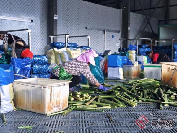 “鹤庆气候适宜,水资源丰富,种出的蔬菜品质好,很受市场欢迎。”在大理毅恒现代农业开发有限公司车间,新鲜采摘的茭白正在进行分拣、包装,送入冷库。该公司负责人李德盛介绍,2021年通过实地考察,大理毅恒现代农业开发有限公司作为首批在辛屯镇投资的农业种植公司之一,共流转土地2300多亩,以“公司+基地+农户”的模式,一年2季连片种植茭白。不仅解决了土地撂荒问题,也提供了村民就近务工岗位。今年,该公司茭白喜获丰收,上市期间每天都有400多名工人进行采收、分拣、包装,茭白预计产量4600多吨,产值达2500多万元。