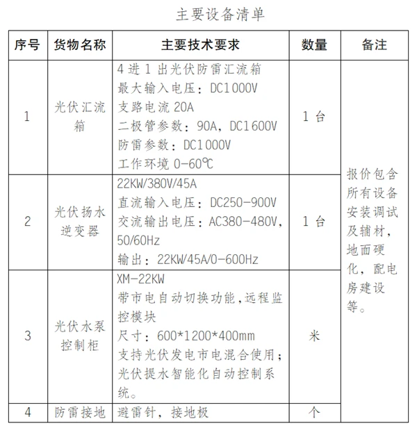 (一)项目名称:智能光伏提水饮水灌溉系统配套物资。