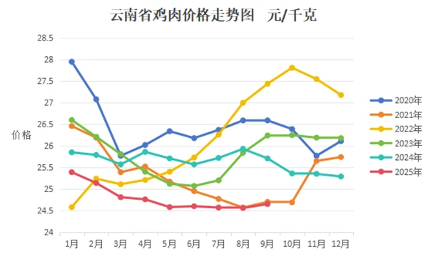2.鸡肉24.65元/千克,环比上涨0.37%,同比下跌4.12%,每千克比全国均价22.55元高2.1元,高9.31%。