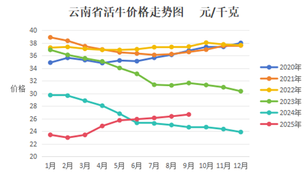 1.活牛26.65元/千克,环比上涨1.14%,同比上涨8.2%,每千克比全国均价27.42元低0.877元,低2.81%。