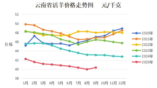 3.活羊40.36元/千克,环比上涨0.95%,同比下跌6.36%,每千克比全国均价30.62元高9.74元,高31.81%。