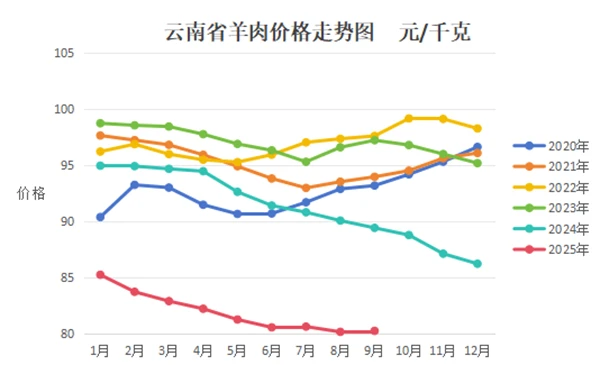 4.羊肉80.25元/千克,环比上涨0.1%,同比下跌10.27%,每千克比全国均价69.59元高10.66元,高15.32%。