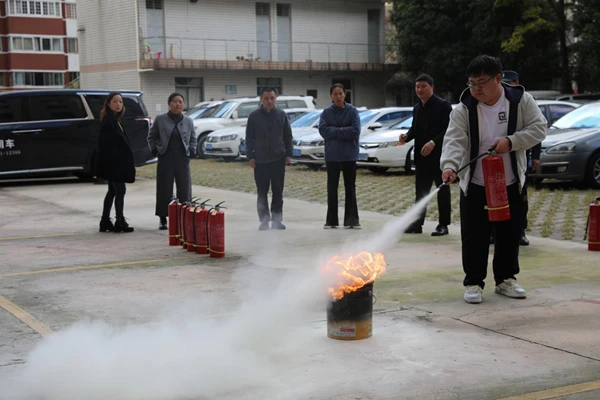 培训期间,参训人员在齐天大厦停车场空旷处进行了应急疏散演练和灭火演练,通过实操掌握了干粉灭火器的使用方法。
