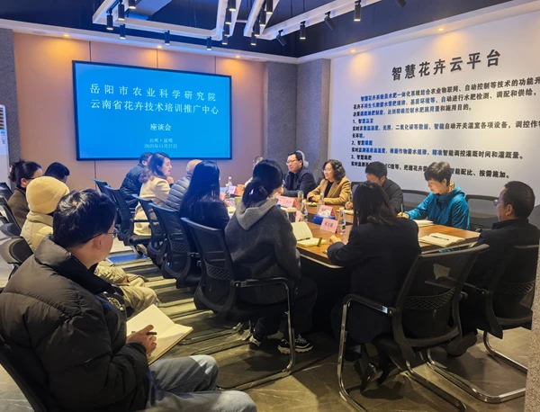 11月27日,农业农村部植物新品种测试岳阳分中心(岳阳市农业科学研究院)主任晏云华一行5人,到云南省花卉技术培训推广中心开展交流学习,双方围绕测试站建站及运行情况、测试体系及制度建设、数字化智能辅助测试开发应用及无纸化测试研究、专业技术人员配备及团队人才培养等方面进行了深入探讨。
