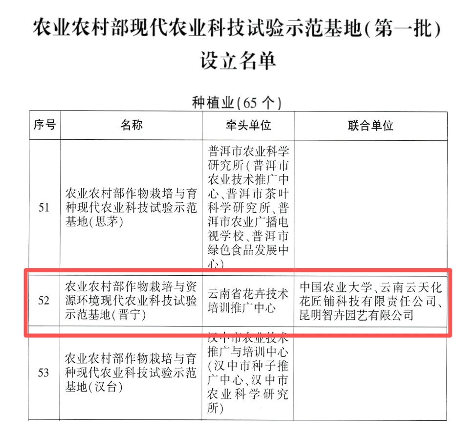 云南省花卉技术培训推广中心晋宁基地入选首批现代农业科技试验示范基地