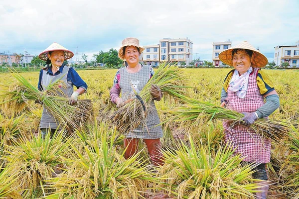近日,昆明市晋宁区晋城街道沙堤村示范种植的800亩生态水稻进入收割期,金黄的稻田呈现一派丰收景象,农户忙着在田间抢收成熟水稻,确保颗粒归仓。