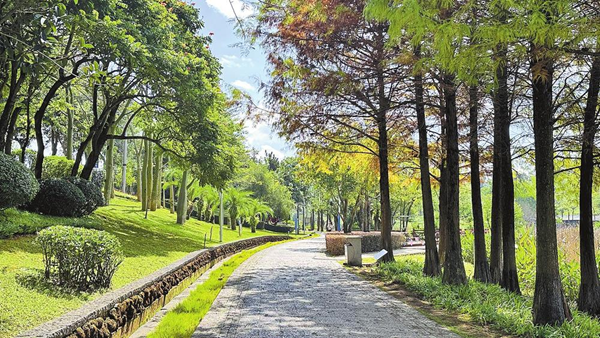 大荒地村旁的洗马湖湿地公园。记者 胡梅君 摄