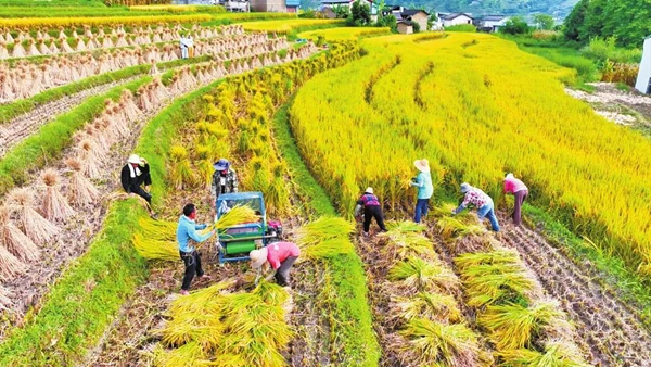 9月上旬,大理白族自治州云龙县功果桥镇的万亩优质水稻迎来收获季,大理白族自治州进入秋粮丰收进行时。