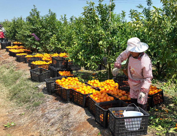 村民在万众缘沃柑基地采收沃柑。记者 李春林 摄