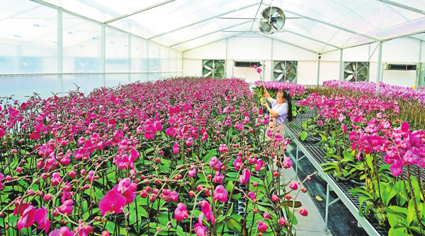 图为科创谷内的云南绿聚隆生物科技有限责任公司智能温室里,工人正在管护蝴蝶兰。通讯员 曾永洪 摄