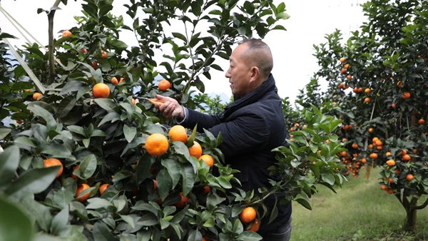 在庙坝镇麻柳村砂糖橘种植基地,沉甸甸的果实压弯了枝头,油光透亮的果皮在阳光下格外诱人。种植户黄顺田提着果篮、手持剪刀,在果树间灵活穿梭,熟练地剪下成熟的橘子,脸上洋溢着藏不住的笑意:“我家种了50亩砂糖橘,今年预计能采收4万公斤,收入有望突破30万元。”