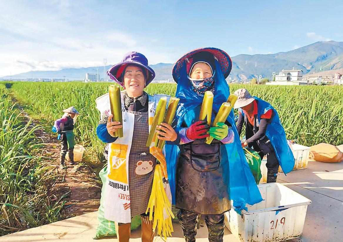 依托得天独厚的气候、水资源与肥沃土壤,草海镇精准发力特色农业,以政府搭台、企业主导、农户参与模式引进省级龙头企业大理毅恒现代农业开发有限公司,通过“公司+基地+农户”核心架构,在彭屯村、母屯村、罗伟邑村、新民村以每亩1200元的租金流转土地近2000亩规模化种植茭白,成为撬动农业提质、农民增收、乡村振兴的特色支柱产业。