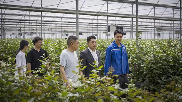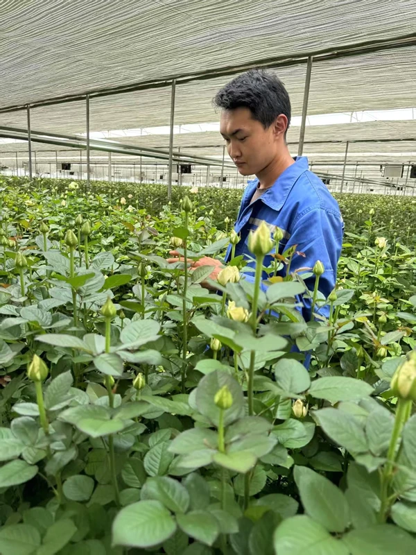 培训班期间,他带领小组学员深入合作社试验田,将理论转化为实践。在党组织帮扶下,他牵头建立“青年党员示范田”,率先尝试基质栽培技术。通过精准调控营养液配比和环境温湿度,使玫瑰生长周期缩短15%,花期延长5—7天,单枝售价提升30%。“看着第一茬无土栽培的玫瑰被抢购一空,我知道这条路走对了。”李思洋回忆。