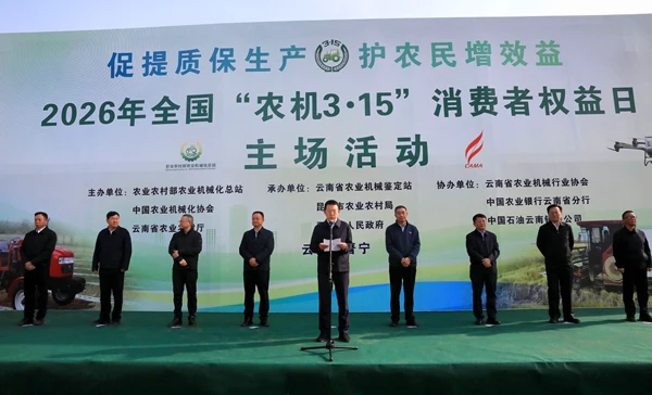 3月15日,由农业农村部农业机械化总站、中国农业机械化协会、云南省农业农村厅联合主办的2026年全国“农机3·15”消费者权益日主场活动在昆明市晋宁区举办。