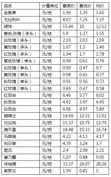 云南昆明斗南花卉市场2026年1月15日花卉价格信息