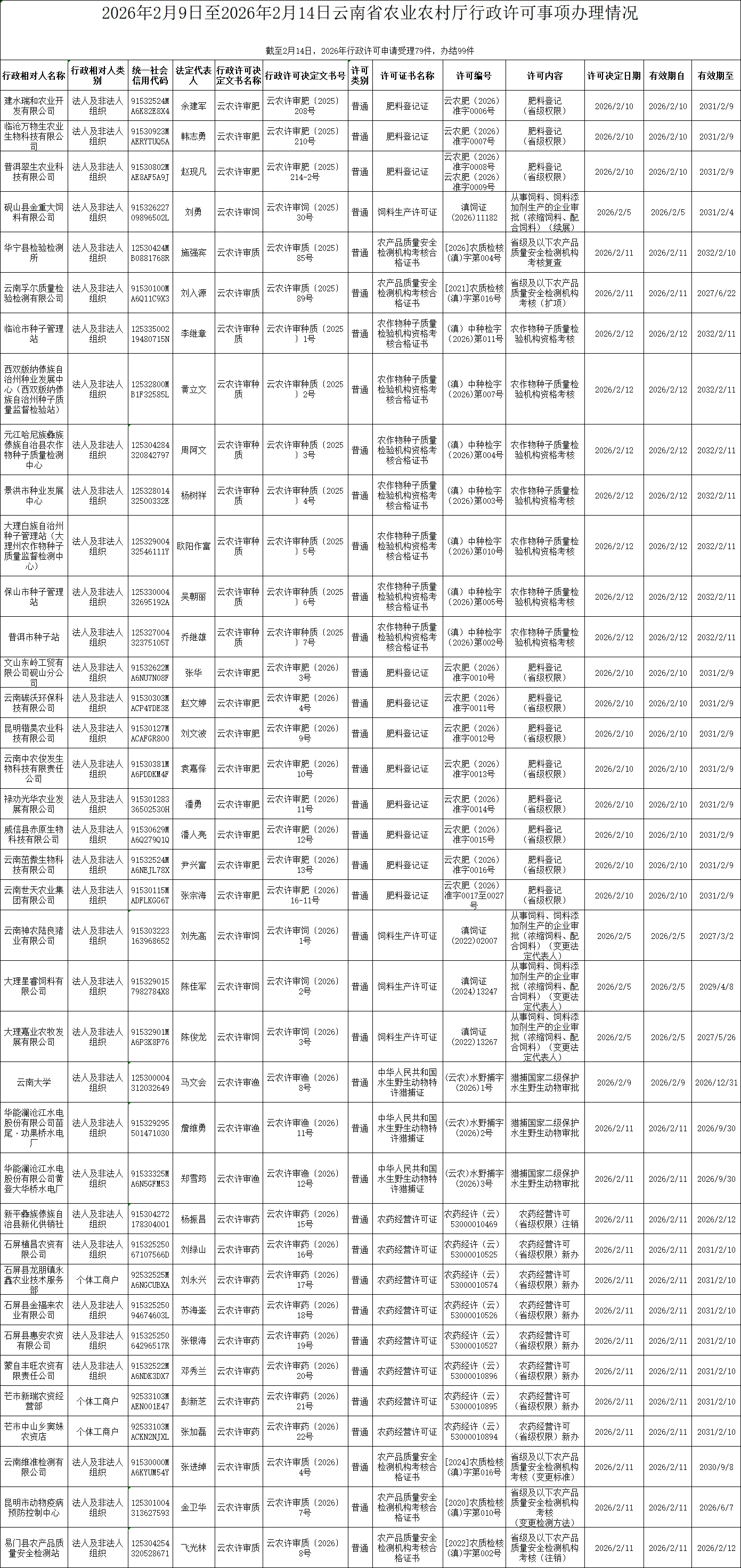 来源:云南省农业农村厅行政审批处 2026-02-25 15:48:51