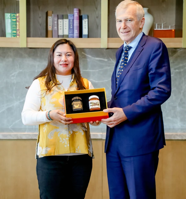 所有的积淀,在2025年12月5日的福州,迎来了一个标志性的高光时刻。在比利时国王与第65、67任首相伊夫·莱特姆访华期间,“古云沧”品牌系列产品——产自云南原始森林的喜马拉雅崖蜂蜜与西双版纳大挂蜂蜜,以及承载着三千年历史的中华老字号锦绣古树茶与屡获金奖的非遗普洱茶,被再度遴选为“一带一路”纪念国礼,赠予首相及其代表团。
