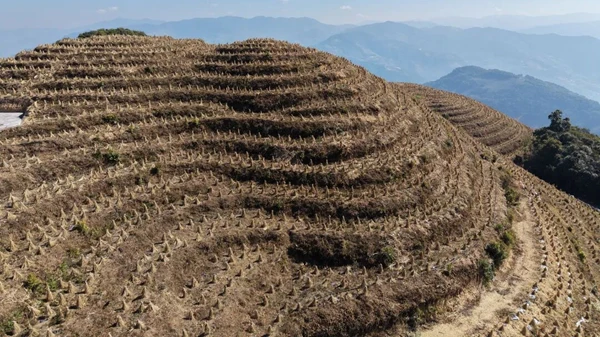 冬日的临沧市镇康县明山咖啡基地,薄雾缭绕在海拔2000米左右的山坡上。放眼望去,漫山的咖啡苗都裹着一层厚实的稻草“小棉袄”,在寒风中安然挺立。“这可不是普通的稻草,是咖啡苗过冬的‘保温房’,有了它,成活率能从原来的40%提升到95%以上。”基地管护员凤尾镇大坝村大平掌自然村村民杨福庆蹲下身,轻轻拨开稻草,露出长势茁壮的咖啡苗,语气里满是自豪。