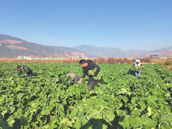 2025年,永胜时留农业综合开发有限责任公司与华中农业大学合作,在三川镇4个村连片种植500亩板蓝根青菜。经过近两个月的科学管护,目前蔬菜长势良好,已陆续开始采收。公司管理人员戴江鹏介绍,基地每日可采收青菜约10吨,经冷链物流销往北京、上海等地,采收期可持续至5月初。(记者:李铁成 通讯员:刘皋)