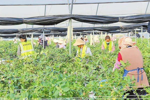 村民采摘蓝莓。