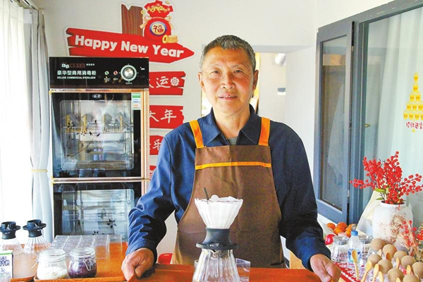 每天清晨,熊献贵、赵发英夫妇都会牵着小狗出门散步,走在曼海村的小道上,呼吸着新鲜的空气。待时间差不多,便返回“八仙过海 共享旅居”咖啡书吧,准备迎接一天的客人。这样的旅创日子,不知不觉已走过一年。