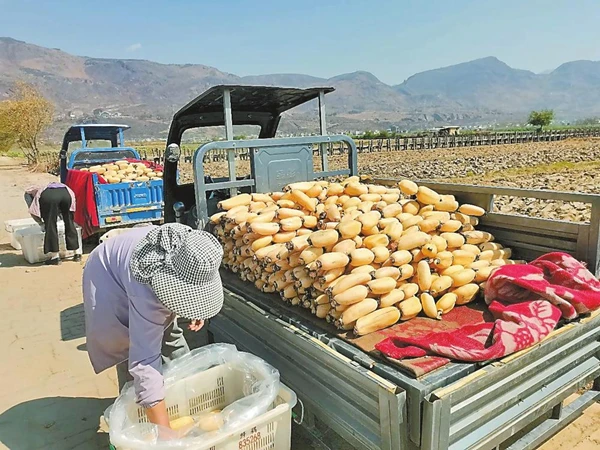 “三川莲藕品质好,我在这里收购多年了,每天发往丽江市区就有10余吨。”收购商李炳林一边指挥装车一边说。