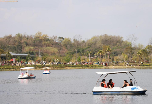 游客在砚山县听湖上泛舟。通讯员 李文雄 摄