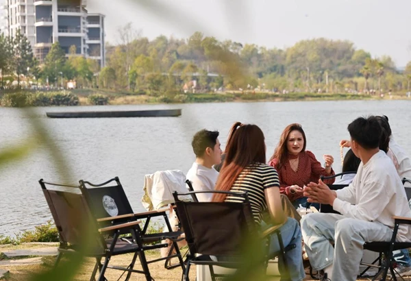 游客正在砚山县听湖边赏美景喝咖啡。通讯员 李文雄 摄